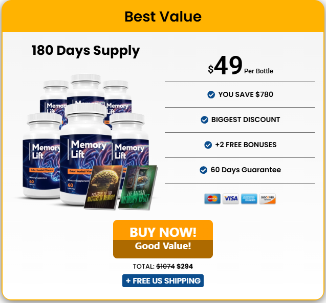 If you’re serious about boosting your memory naturally, sharpening your focus, and reclaiming mental clarity, this is your chance to get Memory Lift at the best possible price — with 2 free bonus e-books and a 60-day money-back guarantee to try it completely risk-free.